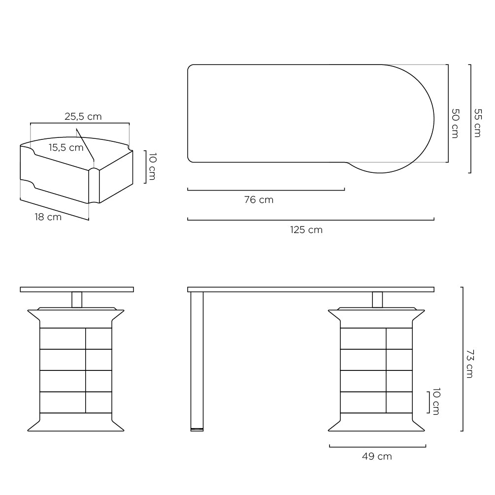 • Medidas del producto: 125 × 50–55 × 73 cm (ancho/profundidad/alto)