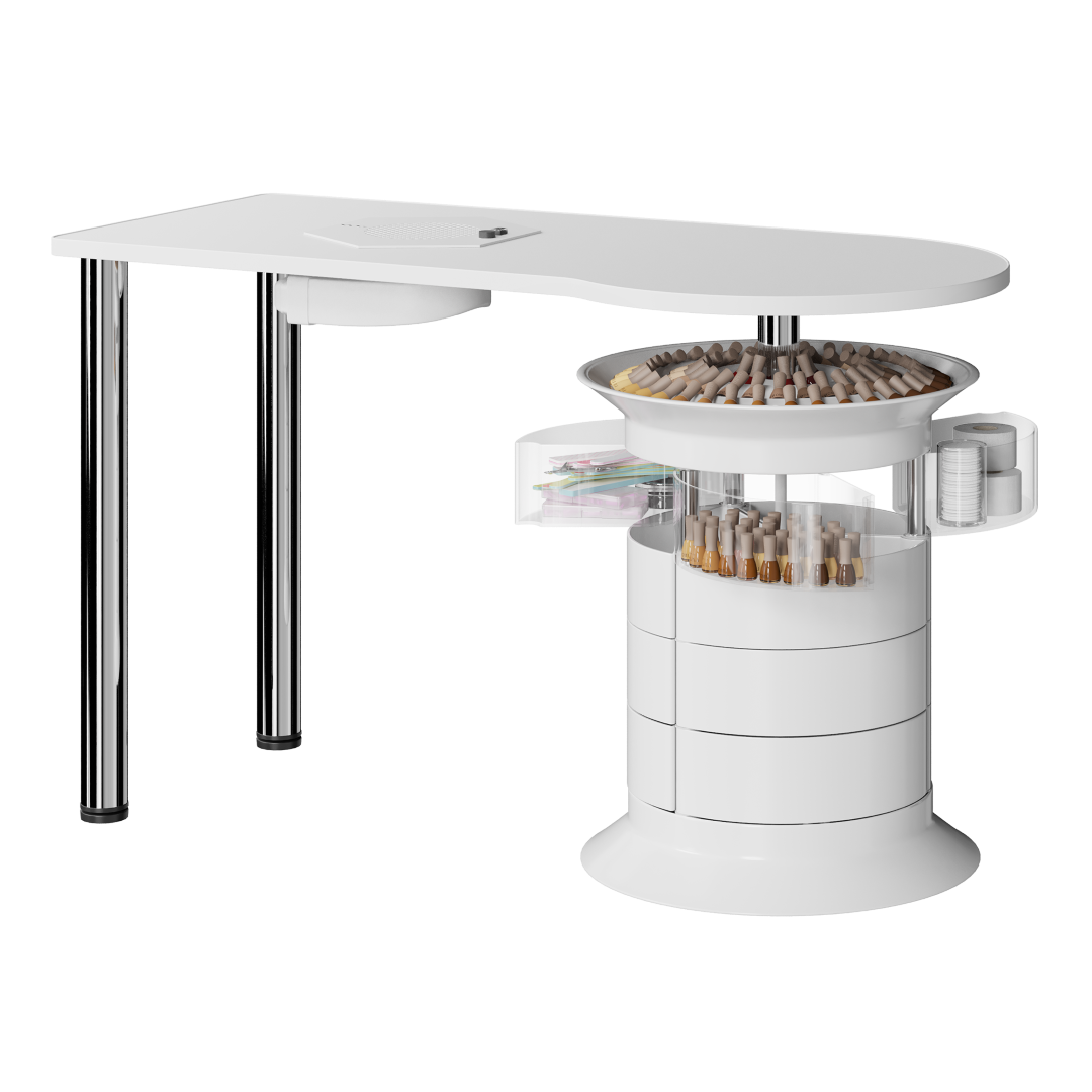 La Mesa de manicura Giroco Elite es una solución profesional y funcional diseñada para esteticistas y centros de belleza que buscan organización, confort y durabilidad en su día a día de trabajo. Con un diseño robusto, materiales de alta calidad y organización inteligente de espacio, esta mesa permite mantener todo lo esencial a mano durante los tratamientos de uñas y esmalte.